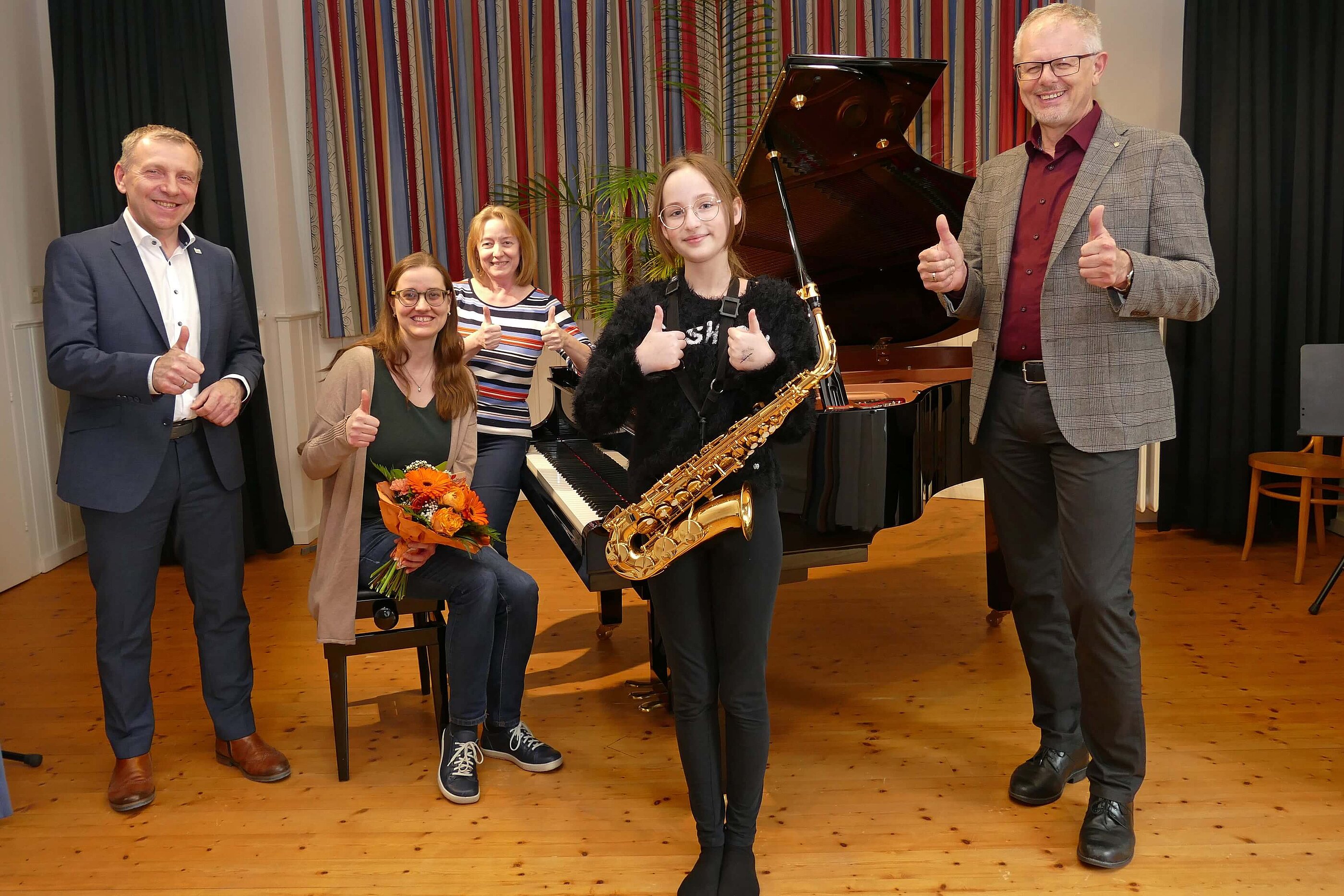 Die Schülerin trat am 9. März 2023 solistisch in der Altersgruppe I an und wurde von einer hochkarätigen bundeslandübergreifenden Fachjury für ihre großartige musikalische Präsentation sehr gelobt und wertschätzend für die weiteren Fortschritte am Instrument beraten. Stolz und glücklich nahm Angelika ihren 1. Preis entgegen. Sie teilte die Freude mit dem Hauptfachlehrer Philipp Gruber, Bakk.art. BA, der Korrepetitorin DI Adele Brandeis, MA und der Leiterin der Musikschule Dipl.-Päd. Riccarda Schrey. Alle Beteiligten haben in den letzten Monaten viel Zeit und Engagement in die Vorbereitungsarbeit investiert.
