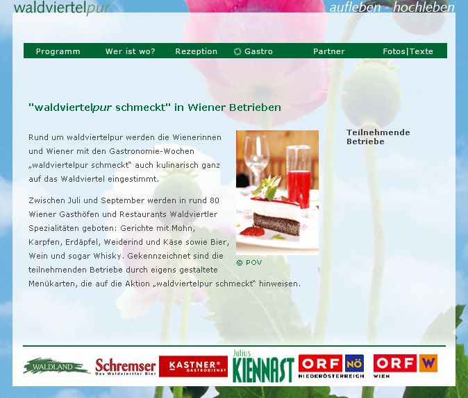 Waldviertler Schmankerln in rund 80 Wiener Gastronomiebetrieben, in denen auch der Imagefolder von"Wohnen im Waldviertel" in ansprechender Dispenserbox aufgestellt wurde.