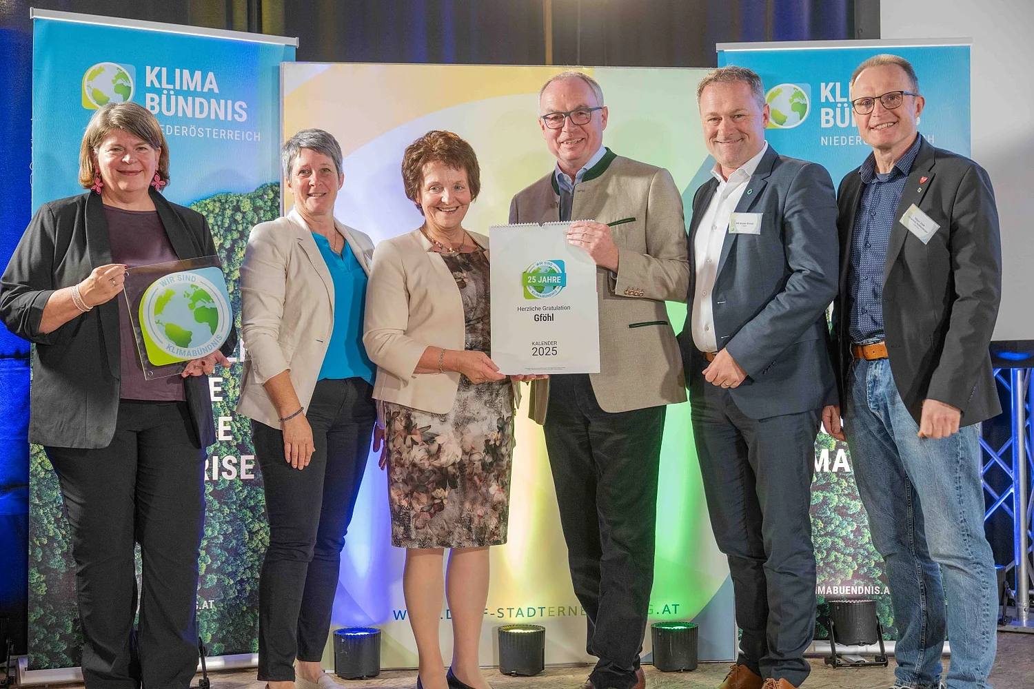 Im Rahmen eines feierlichen Stammtischs in Echsenbach wurden die Stadtgemeinde Gföhl und andere Jubiläumsgemeinden aus dem Waldviertel ausgezeichnet. „Die langjährigen Klimabündnis-Gemeinden sind Vorbilder. Für sie gibt es keine bessere Bühne, um andere zu inspirieren als den Stammtisch der Dorf- & Stadterneuerung, bei dem über 350 Bürgermeister:innen und Gemeinderät:innen aus dem Waldviertel zusammenkommen“, erklärt Petra Schön, Geschäftsführerin vom Klimabündnis Niederösterreich.