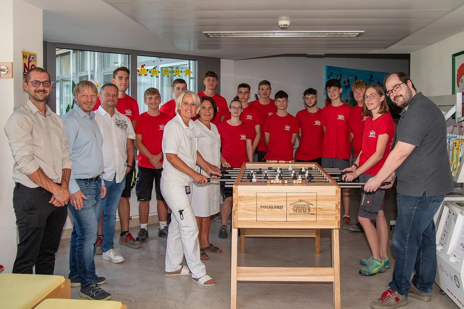 Im Rahmen ihres Ausbildungsprojektes fertigte Katharina Bauer, die sich aktuell in ihrem letzten Lehrjahr bei HARTL HAUS befindet, einen Kickertisch. Dieser bereichert nun die Kinderabteilung des Landesklinikums Zwettl. Mit handwerklichem Geschick und kreativen Ideen setzte Katharina gemeinsam mit ihrem Ausbilder Manuel Gastinger das Projekt von der Planung bis zur Fertigstellung um. Bei der feierlichen Übergabe des „Wuzzlers“ gemeinsam mit Prim. Dr. Daniela Hofer und dem Lehrlingsteam, wurde der Kickertisch offiziell eingeweiht.