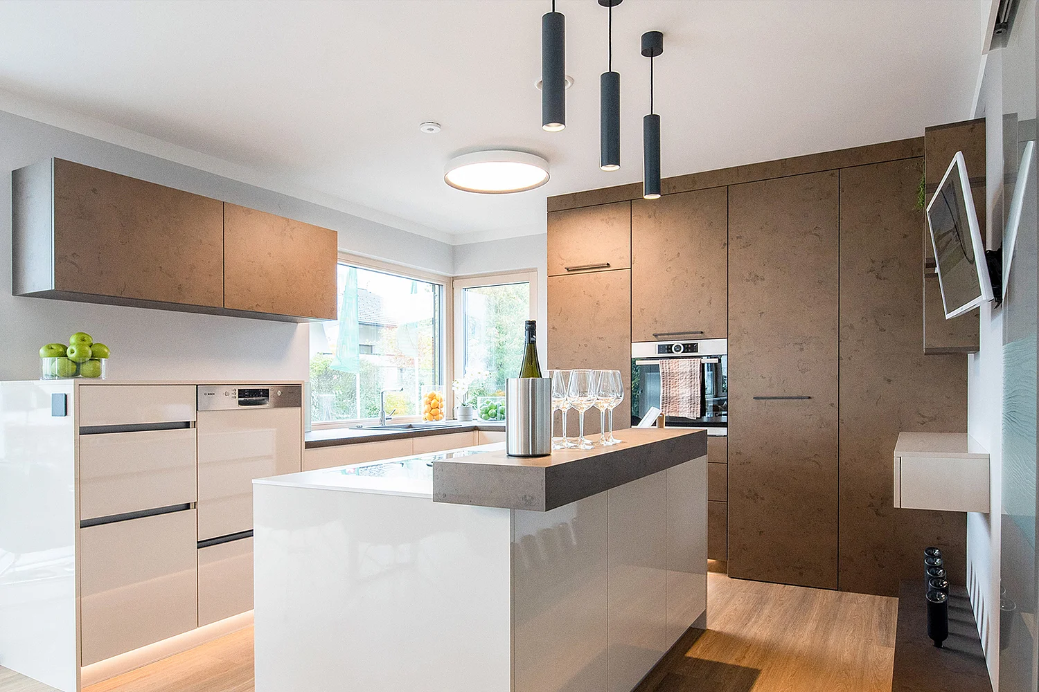 HARTL HAUS setzte hier bewusst auf eine Modernisierung und keinen Neubau eines Musterhauses. Die Konstruktion und Elemente des Hauses, wie zum Beispiel Fenster, sind in perfektem Zustand und bedurften keiner Sanierungsarbeiten. Der Haustyp „Trend 146 W“ ist bei den HARTL HAUS Kunden sehr beliebt. Der Grundriss mit der Raumaufteilung hat sich bewährt und wird gerne und oft, so wie im Musterhaus dargestellt, realisiert.