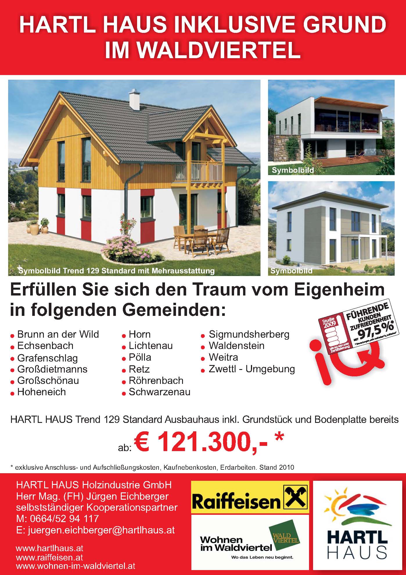16 der 44 "Wohnen im Waldviertel"-Gemeinden starten zusammen mit HARTL HAUS eine Vermarktungsinitiative: HARTL HAUS INKLUSIVE GRUND IM WALDVIERTEL!