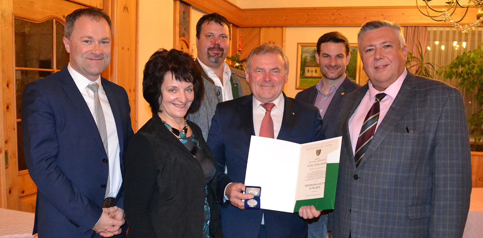 Anlässlich der Versetzung in den Ruhestand verlieh der Gemeinderat der Stadtgemeinde Gföhl Inspektionskommandant Kontrollinspektor Karl Simlinger für seine besonderen Verdienste als Kommandant der Polizeiinspektion in Gföhl sowie der ehrenamtlichen Tätigkeit beim Roten Kreuz, Ortsstelle Gföhl, die Wappenplakette in Silber.