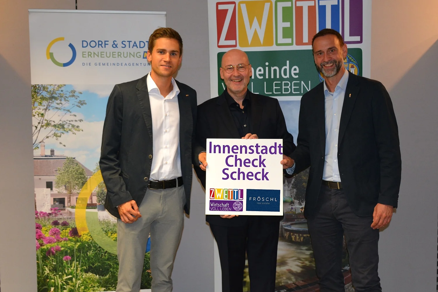 Hauseigentümer:innen in der Zwettler Schutzzone erhielten vor kurzem den neuen „Innenstadt-Check-Scheck“. Dieser berechtigt zu einem kostenlosen Beratungsgespräch über das Immobilienpotenzial der jeweiligen Liegenschaft – gemeinsam mit Vizebürgermeister Alexander Leutgeb und/oder Wirtschaftsstadtrat Thomas Weiss sowie Immobilienexperte Christian Fröschl (Fröschl Real Estate OG). Das Gespräch findet im Stadtamt Zwettl, Gartenstraße 3, statt. Der Innenstadt-Check-Scheck gilt ausschließlich für Immobilien innerhalb der Zwettler Schutzzone. (Eine Barauszahlung ist nicht möglich.)