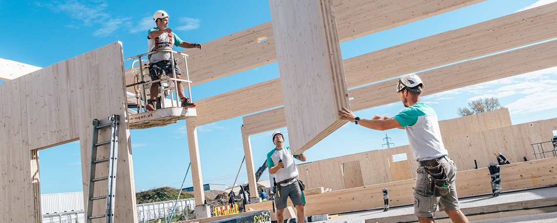 - Dach-, Decken- und Wandelementmontage mit verschiedensten Holzbau-Materialien