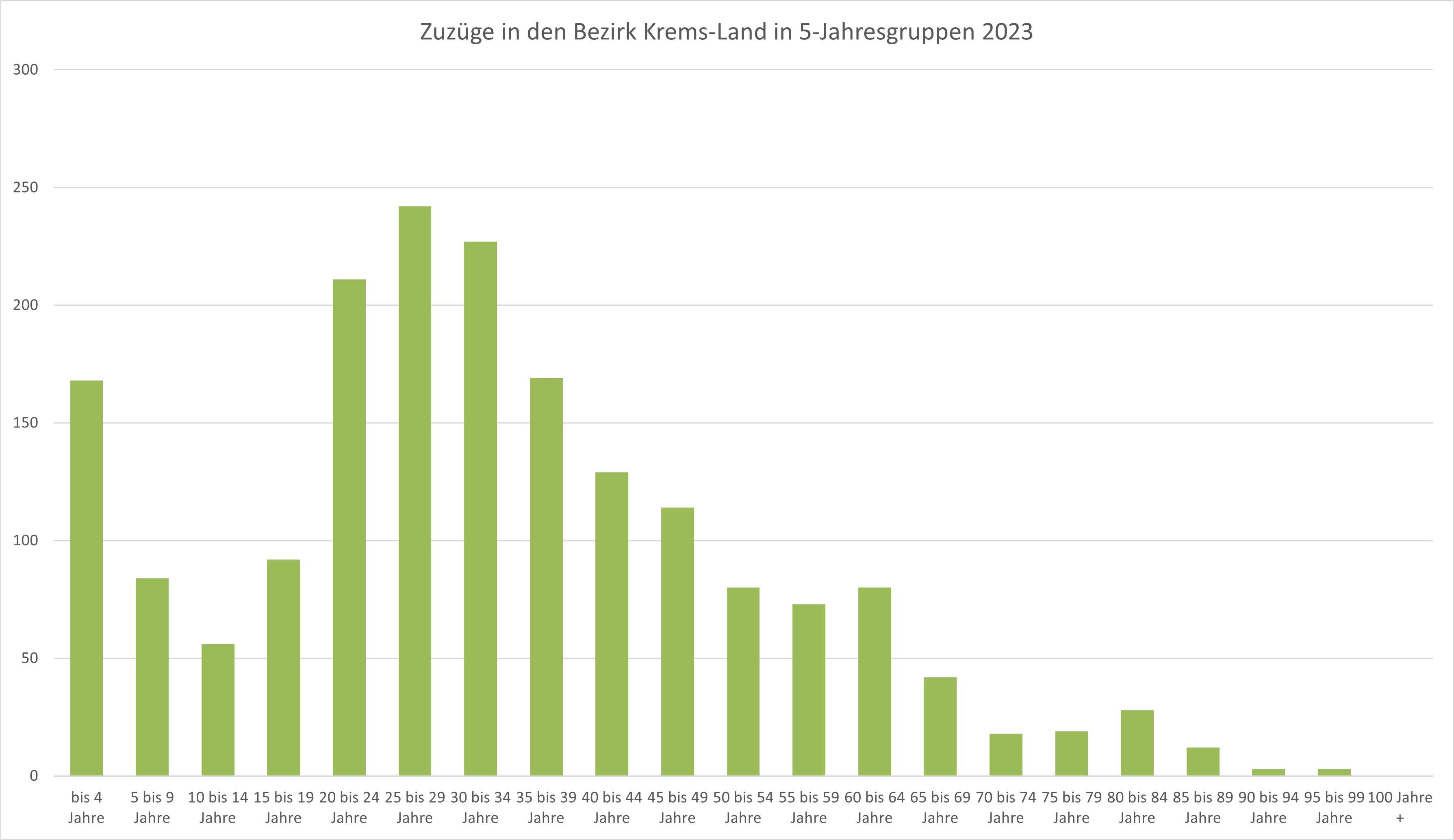 Somit zogen 627 Personen mehr zu als weg. Auch alle Bezirke einzeln betrachtet hatten mit Ausnahme des Bezirkes Krems-Land (mit minus 4) eine positive Wanderungsbilanz.