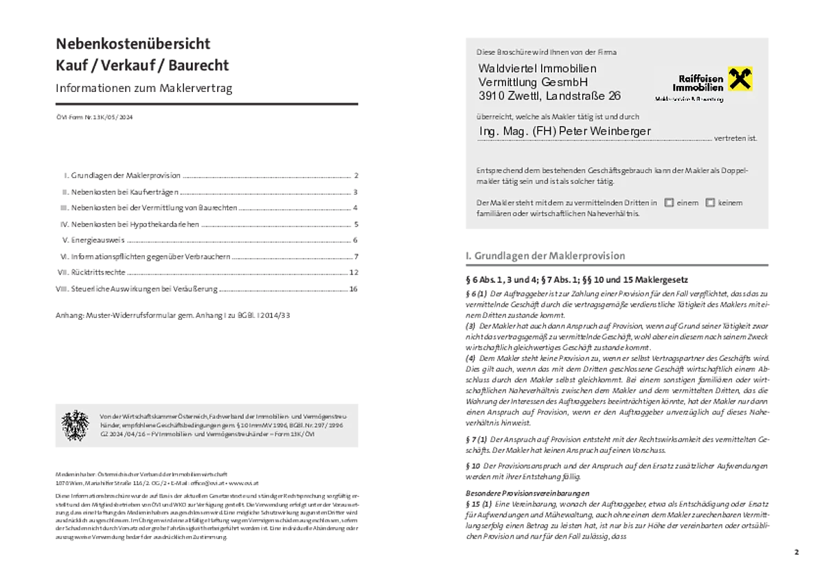 - Maklerprovision: 3% des Kaufpreises p