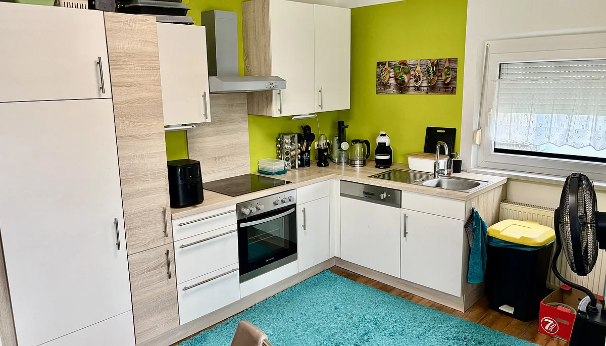 Die Küche präsentiert sich in einem neuwertigen Zustand. Besonders hervorzuheben sind die bereits erneuerten Wasserinstallationen sowie das modernisierte Badezimmer, das mit einer komfortablen elektrischen Fußbodenheizung ausgestattet ist. Ein Waschmaschinenanschluss befindet sich ebenfalls direkt in der Wohnung.